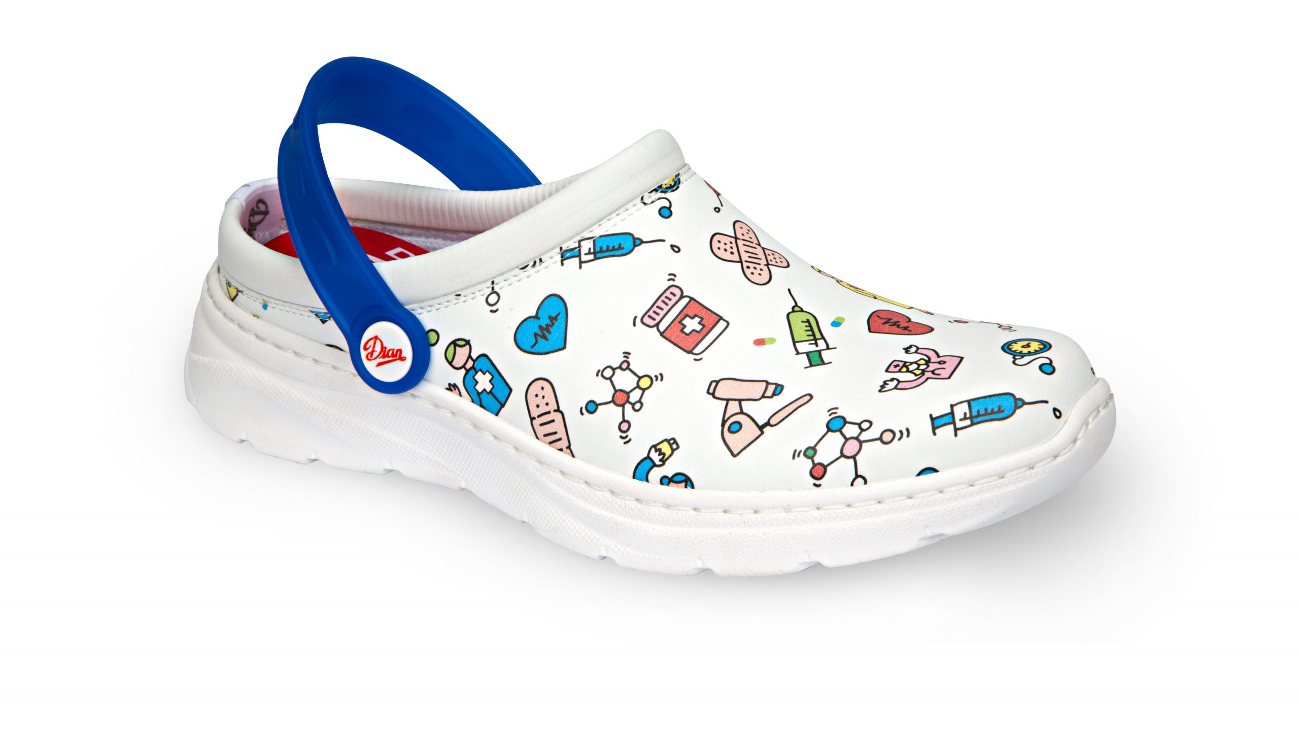 Zueco con correa posterior abatible entre el talón y la pala. Empeine estampado D’COVER PLUS® OEKO-TEX®, de microfibra técnica transpirable, forrado interior D’DRY® de material textil acolchado. Horma recta de puntera redondeada. Plantilla D’WALK® acolchada de material textil sobre espuma bicomponente, que copia la huella del pie. Suela MaxReact®, ultra ligera, flexible, de material polimérico bicomponente, compuesto por una estructura externa muy resistente y antideslizante, relleno de un colchón interior de material blando, para aumentar el confort en la pisada. Apto para lavado en lavadora hasta 40º.